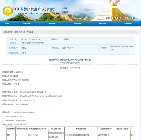 平鄉(xiāng)縣住建局2020年雙代項目中標(biāo)