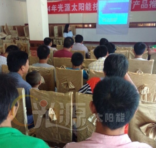 2014年8月20日河南夏邑縣光源太陽能技術(shù)培訓(xùn)及產(chǎn)品推介會隆重召開。本次會議圍繞“互聯(lián)網(wǎng)時代話光源招商之饑餓營銷”為切入點進(jìn)行了為時90分鐘的培訓(xùn)。
