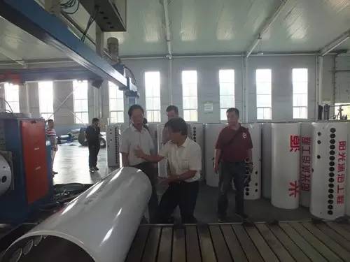 在參觀完太陽能真空集熱管制造車間后又到了太陽能工程設(shè)備總裝車間,先后參觀了全自動下料開平設(shè)備、轉(zhuǎn)塔式全自動數(shù)控沖床生產(chǎn)線、全自動外皮雙頭縮口滾花機、臥式反向積放發(fā)泡生產(chǎn)線、環(huán)戊烷聚氨酯高壓發(fā)泡機、全自動數(shù)控打包生產(chǎn)線以及壁掛太陽能生產(chǎn)線等等。