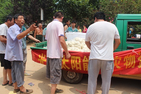 根據(jù)開發(fā)區(qū)管委會統(tǒng)一安排,轄區(qū)內(nèi)企業(yè)對受災(zāi)村民在生活上進行對口支援。光源太陽能公司與其他幾家企業(yè)支援景家屯村。其中光源公司為景家屯300名村民提供一日三餐,解決300口人的生活問題。