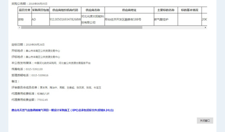 奮力拼搏創(chuàng)佳績,捷報頻傳奏凱歌。河北光源太陽能科技有限公司,在2019年09月27日,唐山市豐南區(qū)2019年第二批氣代煤燃?xì)獗趻鞝t及電代煤電取暖設(shè)備采購及安裝項目A標(biāo)包第四標(biāo)段中標(biāo),為我公司2019年度輝煌的經(jīng)營業(yè)績再添濃墨重彩的一筆。