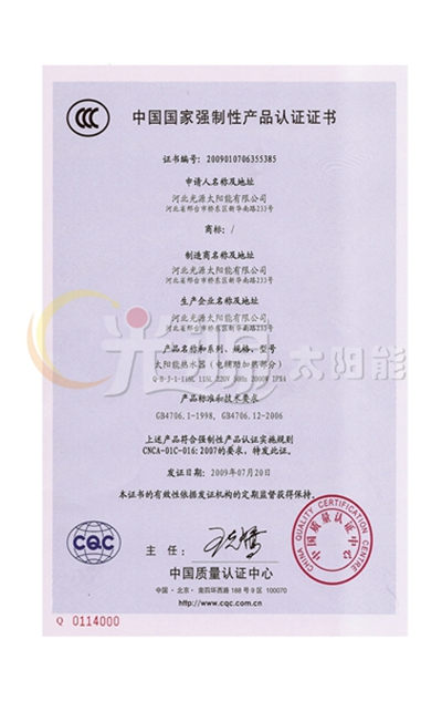 中國(guó)國(guó)家強(qiáng)制性認(rèn)證證書(shū)
