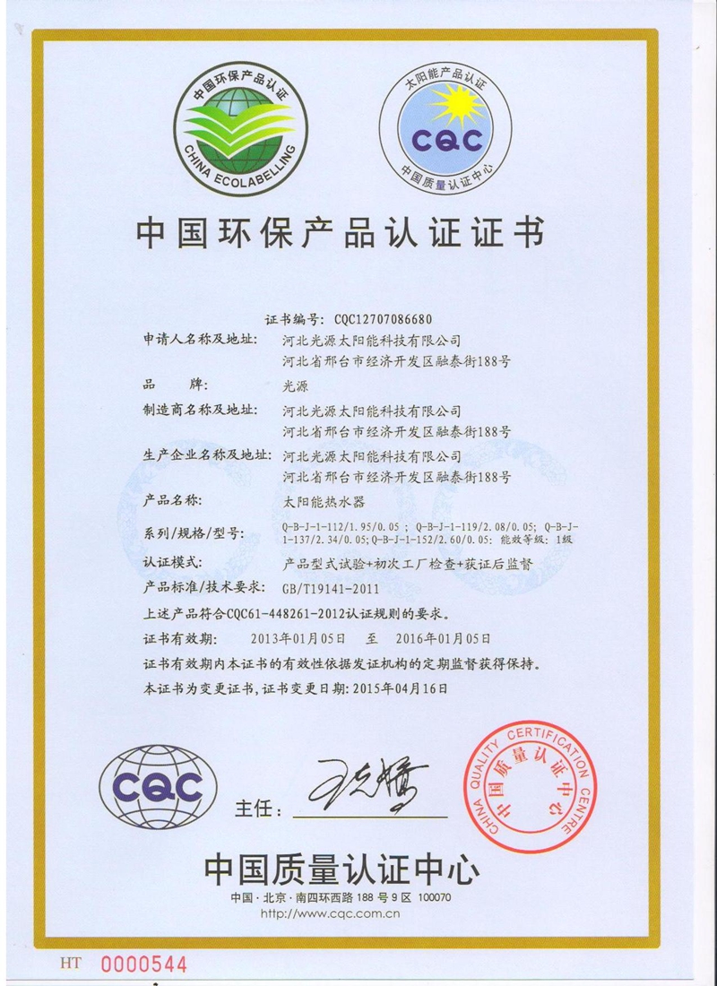 中國(guó)環(huán)保產(chǎn)品認(rèn)證證書(shū)