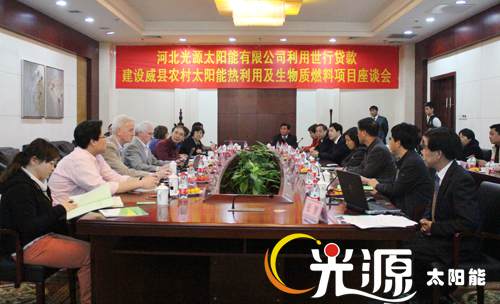 識別團一行在河北省發(fā)改委外資處副處長史海峰、河北省財政廳涉外處副處長何貴滿、河北省新能源技術推廣站副主任王香雪及市直有關部門負責人的陪同下實地考察了光源公司威縣農村太陽能熱利用及生物質燃料項目。通過考察了解了太陽能采暖、太陽能熱開水系統(tǒng)的工作原理、項目周邊環(huán)境及使用情況,并對項目的具體情況展開了座談討論。光源公司副總經(jīng)理邵東坤就光源公司的基本概況、經(jīng)營情況以及世行貸款項目概況向識別團進行了匯報,識別團針對項目的建設內容、開發(fā)潛力、市場風險等問題進行了提問和討論。
