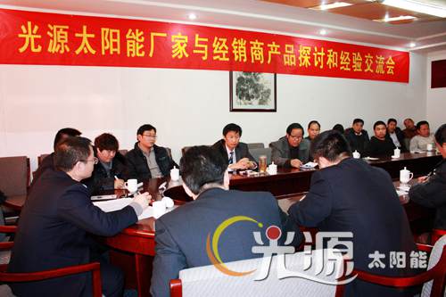 次日上午9點(diǎn)30分,光源太陽(yáng)能經(jīng)銷商代表與該公司各部門(mén)代表舉行了座談會(huì)。座談會(huì)上,大家暢所欲言,提出產(chǎn)品在研發(fā)、生產(chǎn)、銷售、售后等各環(huán)節(jié)的意見(jiàn)和建議,使各部門(mén)更深一步地了解一線市場(chǎng)信息,傾聽(tīng)經(jīng)銷商的心聲和呼聲,有針對(duì)性地做好生產(chǎn)、技術(shù)、物流、宣傳、促銷等工作。