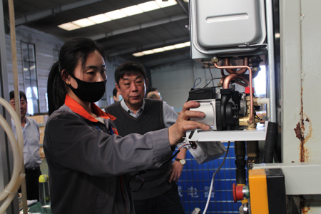 接著,焦世清主任來到公司壁掛爐生產(chǎn)車間,實地考察了國家支持技改項目---煤改氣壁掛爐生產(chǎn)線。焦主任囑托公司,要繼續(xù)做好產(chǎn)品,保證科學(xué)技術(shù)在世界的領(lǐng)先地位。