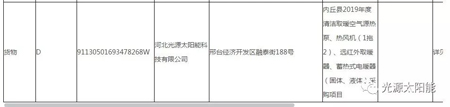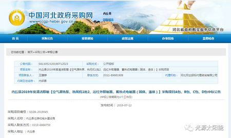 內(nèi)丘縣2019年度清潔取暖【空氣源熱泵、熱風(fēng)機(jī)1拖2、遠(yuǎn)紅外取暖器、蓄熱式電暖器(固體、液體)】采購項目入圍項目中標(biāo)公告出爐,河北光源太陽能科技有限公司憑借強(qiáng)大的品牌實力、過硬的產(chǎn)品質(zhì)量以及親民的售后服務(wù)榮登榜單。入圍產(chǎn)品為:蓄熱式電暖器(液態(tài))。