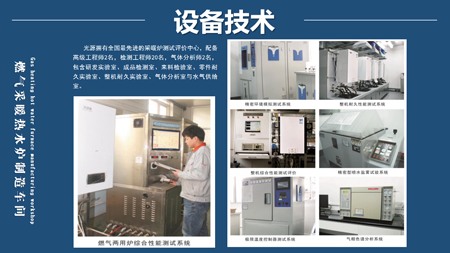 光源擁有全國最先進的采暖爐測試評價中心,配備高級工程師2名,檢測工程師20名,氣體分析師2名,包含研發(fā)實驗室、成品檢測室、來料檢驗室、零件耐久實驗室、整機耐久實驗室、氣體分析室與水氣供給室。